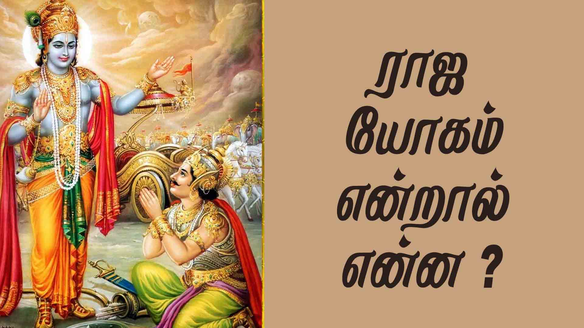 ராஜ யோகம் என்பது ஆட்சி செய்வதற்கான யோகம் அல்லது ராஜாக்கள் பின்பற்ற வேண்டிய வாழ்க்கை முறை என்று பொருள்படும். இது வெறும் அரசியல் சாஸ்திரம் மட்டுமல்ல; தர்மம், அறம், நீதி போன்ற உயரிய கொள்கைகளை அரசியலில் ஒருங்கிணைக்கும் முறையாகும்.